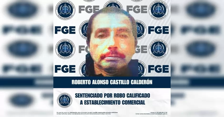 TECATE.- La Unidad de Investigación de Delitos con Detenido, adscrita a la Fiscalía Regional de Tecate, obtuvo sentencia condenatoria en contra de Roberto Alonso Castillo Calderón por el delito de robo calificado cometido a establecimiento comercial abierto al público.