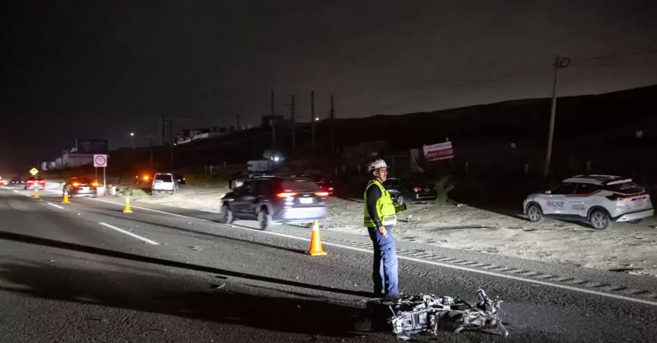 Rosarito.- Un motociclista murió en un aparatoso accidente registrado sobre la carretera de cuota Rosarito-Tijuana, a la altura de Real del Mar. Los restos quedaron esparcidos sobre el asfalto junto a una motocicleta Suzuki negra con matrícula B8CK8.