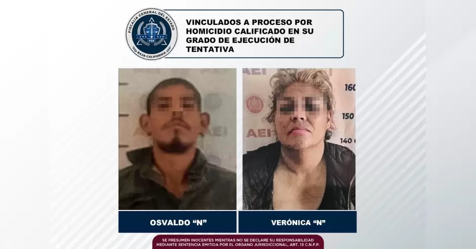 TIJUANA.- Datos de prueba y evidencia recabada por la Fiscalía General del Estado, permitieron, a través de un procedimiento abreviado, obtener una sentencia para un hombre y una mujer, Osvaldo "N" y Verónica "N", respectivamente, acusados de intento de homicidio, por hechos acontecidos en enero 2022.
