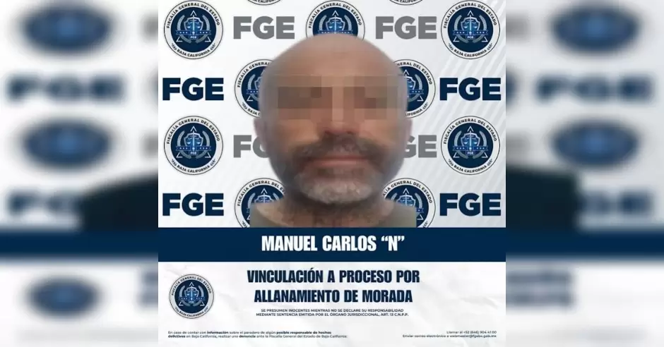 TIJUANA.- La Fiscalía General del Estado informa que, como resultado de los elementos de prueba presentados por el Ministerio Público de la Fiscalía Regional de Tijuana, el juez de control determinó vincular a proceso a un imputado por el delito de allanamiento de morada.