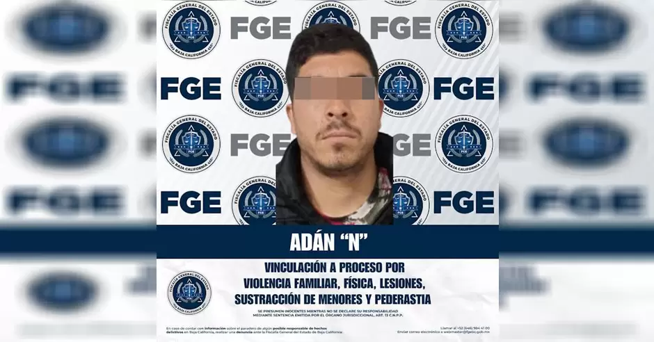 TIJUANA.- La Unidad de Investigación en Delitos de Violencia Familiar Zona La Mesa, adscrita a la Fiscalía Especializada en Delitos Contra Mujeres por Razón de Género, obtuvo la vinculación a proceso y la medida cautelar de prisión preventiva en contra de Adán "N", por los delitos de violencia familiar, física, lesiones agravadas en razón de género, sustracción de menores y pederastia.