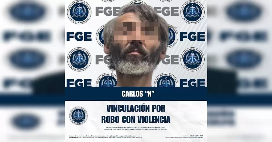 TIJUANA.- La Fiscalía Regional de Tijuana, a través de las labores realizadas por la Unidad de Investigación con Detenido, logró la vinculación a proceso de Carlos "N" por su presunta responsabilidad en el delito de robo con violencia, derivado de hechos ocurridos en la colonia Los Álamos de esta ciudad.