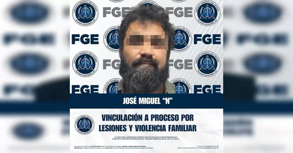 TIJUANA.- La Fiscalía General del Estado de Baja California informó que fue vinculado a proceso penal José Miguel "N", por su presunta responsabilidad en los delitos de lesiones y violencia familiar.
