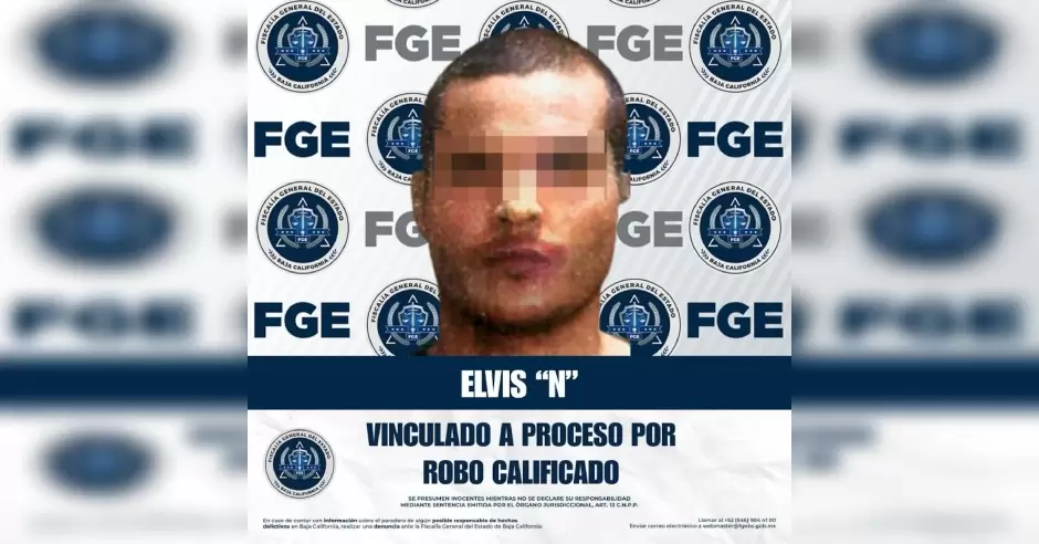 TIJUANA.-La Fiscalía Regional de Tijuana informa que, como resultado del seguimiento a las investigaciones realizadas por el Ministerio Público, se obtuvo la modificación de la medida cautelar a prisión preventiva justificada en contra de Elvis "N", imputado por el delito de robo calificado cometido por dos o más personas.