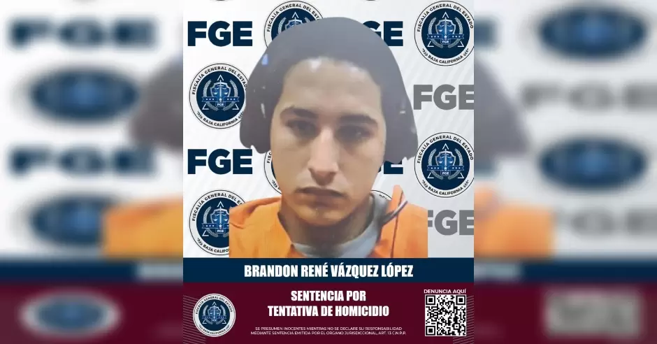 TIJUANA.- Después de ser declarado penalmente responsable del delito de homicidio calificado con ventaja en grado de ejecución de tentativa, Brandon René Vázquez López, alias "El Tato", fue sentenciado a 13 años y 4 meses de prisión. La Fiscalía Especializada en Delitos Contra la Vida presentó los datos y elementos de prueba que derivaron en esta pena privativa de la libertad.