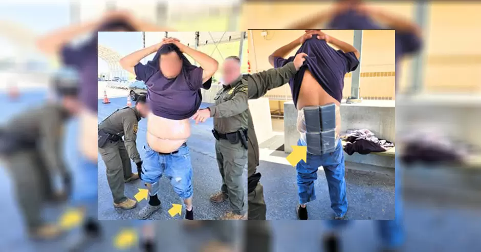 El hecho ocurrió el domingo 8 de junio de 2025, aproximadamente a las 11:55 de la mañana, cuando los agentes asignados al punto de control de la I-8 remitieron a inspección secundaria a un automóvil tipo coupé de color azul. Durante una revisión de seguridad al conductor, los agentes descubrieron paquetes ocultos bajo la ropa del hombre, envueltos en plástico y adheridos a su cuerpo.