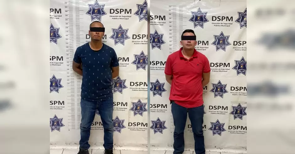 MEXICALI.- Agentes de policía municipal en acciones coordinadas de vigilancia operativa "Mexicali Seguro", lograron la detención de Edwin Hilario "N" de 26 años y Carlos José "N" alias "El Memin" de 35 años, ambos señalados como objetivos delictivos en materia de combate a los delitos patrimoniales en la ciudad, aparentemente relacionados en 33 robos con violencia cometidos principalmente en contra de autoservicios.