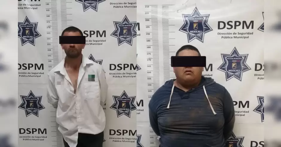 MEXICALI.- La inmediata actuación realizada por agentes de la Dirección de Seguridad Pública Municipal de Mexicali (DSPM), permitió la detención de dos personas del sexo masculino, señaladas de ingresar sin autorización a un predio en el que tras el cruce de información se notificó que uno de los implicados cuenta con un mandato judicial activo por el delito de robo con violencia.