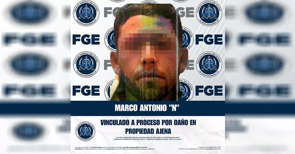 TIJUANA.- La Fiscalía Regional de Tijuana, a través de la Unidad de Investigación con Detenido, logró obtener la vinculación a proceso y la imposición de la medida cautelar de prisión preventiva justificada en contra de Marco Antonio "N", por su presunta responsabilidad en los delitos de daño en propiedad ajena por culpa y daño en propiedad ajena doloso. Los hechos se registraron el 14 de febrero de 2026, aproximadamente a las 20:05 horas, cuando el imputado Marco Antonio conducía un vehículo marca Jeep Grand Cherokee, color blanco, en la colonia El Florido 4ta Sección.