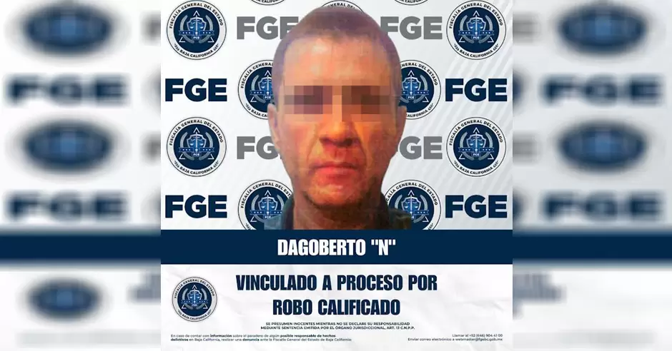 TIJUANA.- La Fiscalía General del Estado, a través de la Unidad de Investigación de Robos Mariano Matamoros, Zona Tijuana, informa que se obtuvo la vinculación a proceso en contra de Dagoberto "N", por su presunta responsabilidad en el delito de robo calificado cuando se comete en establecimiento comercial abierto al público.