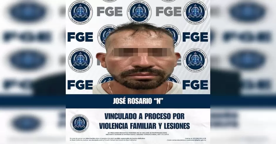 PLAYAS DE ROSARITO.- La Fiscalía Especializada en Delitos contra Mujeres por Razón de Género de Playas de Rosarito obtuvo la vinculación a proceso de José Rosario "N" por los delitos de violencia familiar y lesiones.