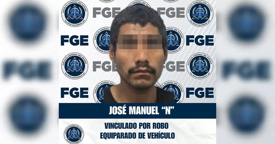 TIJUANA.- La Fiscalía General del Estado de Baja California, por medio de la Fiscalía Regional de Tijuana y el trabajo especializado de la Unidad de Investigación de Robo de Vehículos, Zona Tijuana, informa que se logró obtener vinculación a proceso en contra de José Manuel "N", por su probable responsabilidad en el delito de robo equiparado de vehículo de motor, en su modalidad de poseer vehículo con reporte de robo.