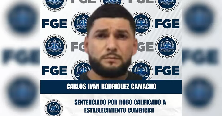 TECATE.- La Unidad de Investigación Contra Robos, adscrita a la Fiscalía Regional de Tecate, obtuvo sentencia condenatoria en contra de Carlos Iván Rodríguez Camacho, por el delito de robo calificado a establecimiento comercial abierto al público, cometido por dos personas armadas.