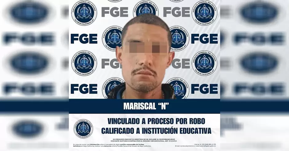 TECATE.- La Unidad de Delitos Contra Robos de la Fiscalía Regional de Tecate, consiguió la vinculación a proceso de Mariscal "N", por el delito de robo calificado cuando se comete en contra de uno y más bienes de cualquier institución educación pública.