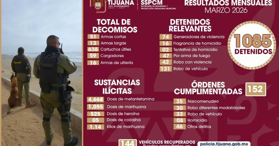 La SSPCM reitera su compromiso de continuar implementando estrategias que permitan mantener el orden, inhibir conductas delictivas y garantizar la tranquilidad de las y los tijuanenses.
