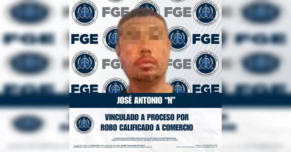 TIJUANA.- La Fiscalía Regional de Tijuana, a través de la Unidad de Investigación de Robos Mariano Matamoros, obtuvo la imposición de medida cautelar de prisión preventiva justificada en contra de José Antonio "N", por el delito de robo calificado cometido en establecimiento comercial abierto al público.