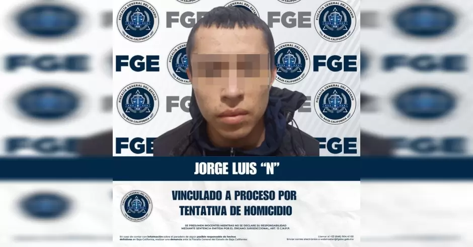 TIJUANA.- La Fiscalía General del Estado, a través de las labores de la Fiscalía Especializada en Delitos Contra la Vida, informa que se logró obtener la vinculación a proceso con la imposición de la medida cautelar de prisión preventiva oficiosa en contra de Jorge Luis "N", por su presunta responsabilidad en el delito de homicidio en grado de tentativa. Los hechos ocurrieron el día 14 de diciembre de 2025, aproximadamente a las 16:30 horas, en la colonia Los Valles, en esta ciudad.