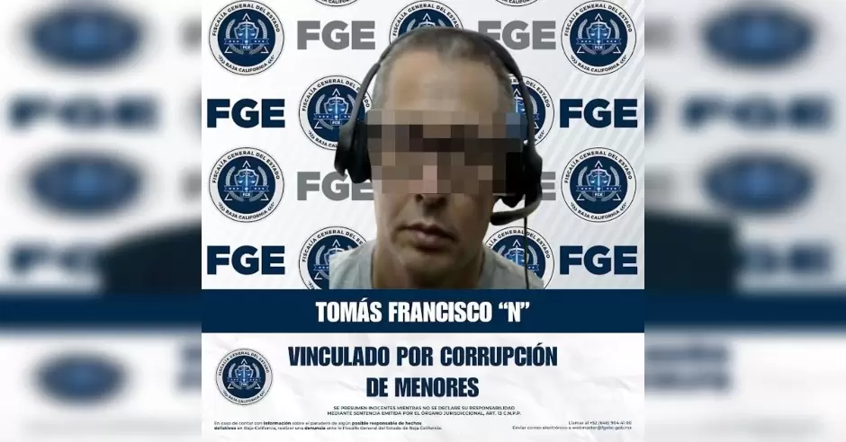 TIJUANA.- La Fiscalía General del Estado, a cargo de la Dra. Ma. Elena Andrade Ramírez, bajo sus directrices de investigar y apoyar a las víctimas de delitos que atenten contra la seguridad e integridad de las y los menores en la entidad, a través de la Fiscalía Especializada en Delitos Contra la Mujer por Razón de Género, informa que se logró la vinculación a proceso en contra de Tomás Francisco "N" por el delito de corrupción de menores en agravio de un adolescente de 13 años de edad.