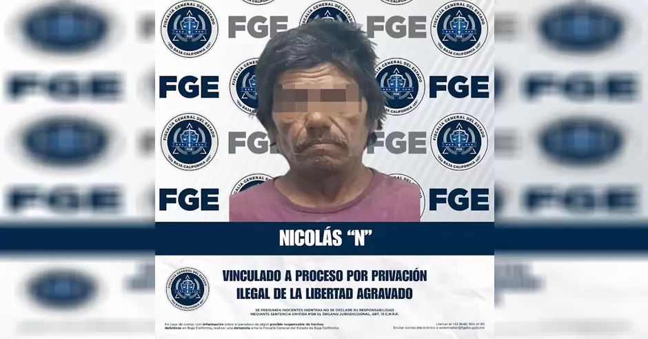 TIJUANA.- La Unidad de Investigación con Detenido, adscrita a la Fiscalía Regional de Tijuana, obtuvo la vinculación a proceso y la imposición de la medida cautelar de prisión preventiva en contra de Nicolás "N", por su presunta responsabilidad en el delito de privación ilegal de la libertad agravada.