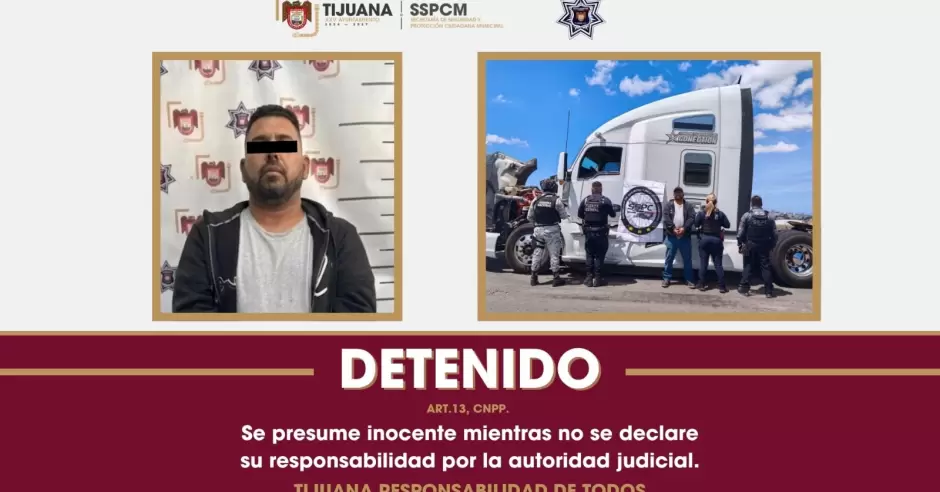 TIJUANA.- La Secretaría de Seguridad y Protección Ciudadana Municipal (SSPCM) informa que, gracias a la cooperación y al intercambio de información con autoridades de Estados Unidos, se logró la detención de una persona que conducía un tractocamión con reporte de robo vigente en el vecino país.