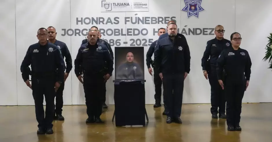 TIJUANA.- La Secretaría de Seguridad y Protección Ciudadana Municipal (SSPCM), llevó a cabo una emotiva ceremonia de honras fúnebres en memoria del agente Robledo Hernández Jorge, quien fue privado de la vida el pasado 1 de octubre mientras se encontraba activo en la corporación, a la que sirvió con entrega y compromiso desde el 25 de abril de 2022, y antes de su deceso estaba adscrito en la Unidad Especializada en Recuperación de Vehículos.