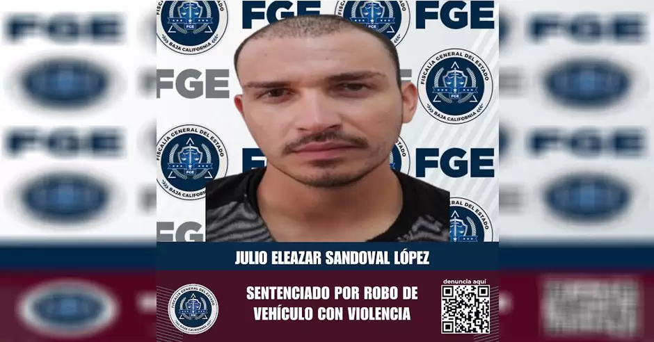 TIJUANA.- Como resultado del trabajo con la procuración de justicia, la Fiscalía Regional de Tijuana, a través de la Unidad de Investigación de Robo de Vehículos, obtuvo una sentencia condenatoria de 6 años y 8 meses de prisión en contra de Julio Eleazar Sandoval López, por el delito de robo de vehículo con violencia.