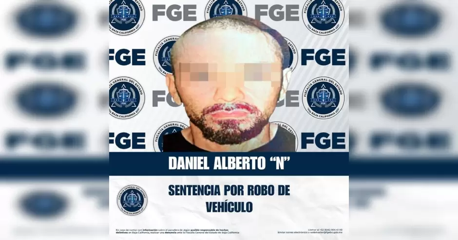 TIJUANA.- La Unidad de Investigación Especializada en Robo de Vehículos, adscrita a la Fiscalía Regional de Tijuana, obtuvo una sentencia condenatoria en contra de Daniel Alberto "N", por el delito de robo de vehículo en su modalidad de uso de vehículo con reporte de robo.