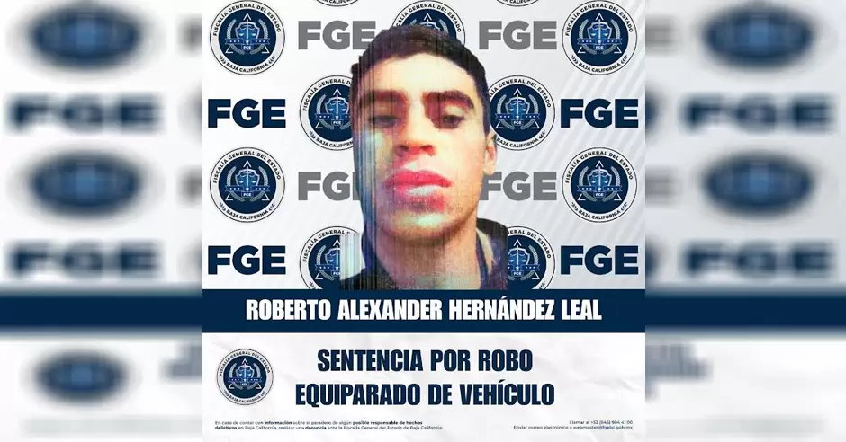 TIJUANA.- La Unidad de Investigación de Robo de Vehículos, adscrita a la Fiscalía Regional de Tijuana, obtuvo sentencia condenatoria en contra de Roberto Alexander Hernández Leal, por el delito de robo equiparado de vehículo de motor, en su modalidad de uso.