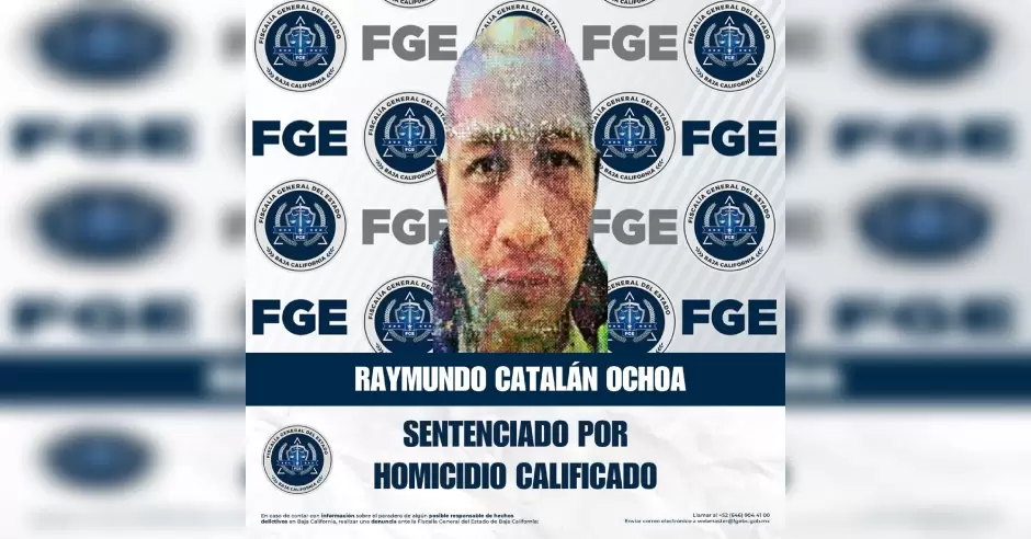 TIJUANA.- La Coordinación de Averiguaciones Previas y Control de Proceso, adscrita a la Fiscalía Regional de Tijuana, obtuvo la sentencia condenatoria de 25 años de prisión en contra de Raymundo Catalán Ochoa, alias "El Ray" y/o "El Travieso", por el delito de homicidio calificado.