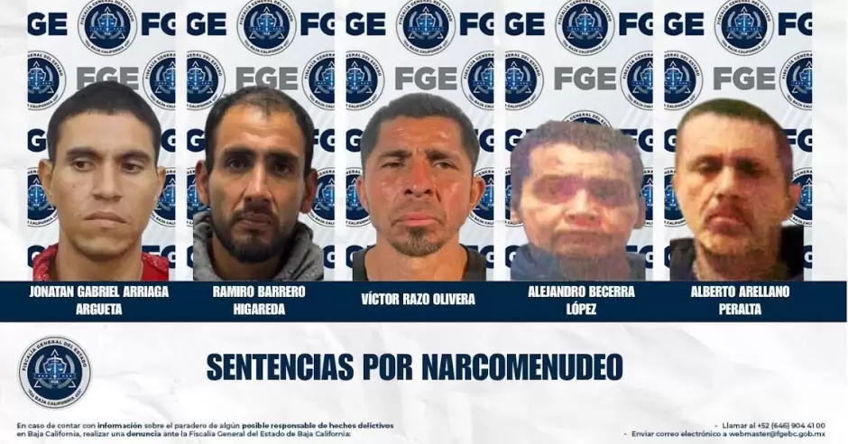 TIJUANA.- La Fiscalía General del Estado, a través de la Fiscalía Especializada en Narcomenudeo, obtuvo sentencias condenatorias contra cinco personas por delitos contra la salud, en la modalidad de posesión de metanfetamina y marihuana.