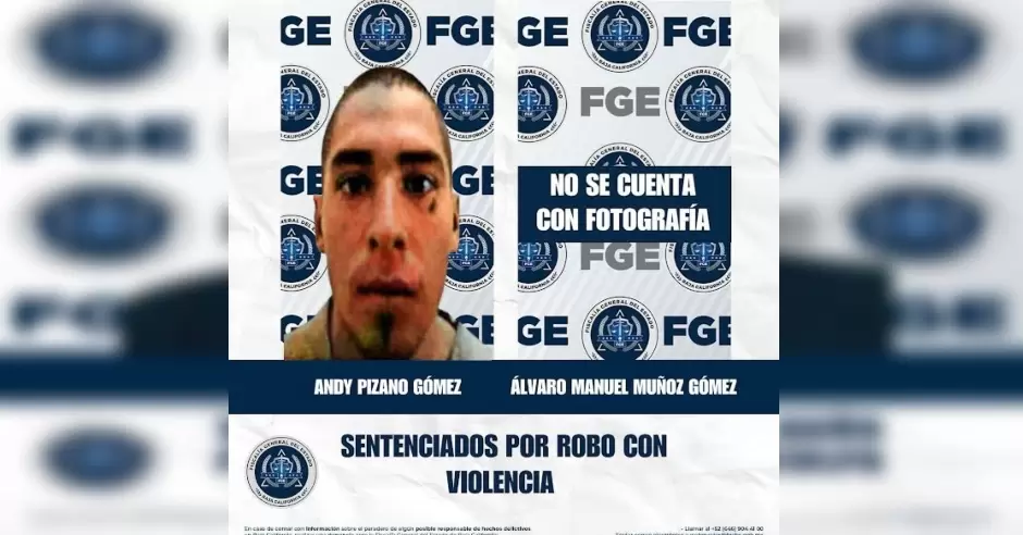 TIJUANA.- La Coordinación de Averiguaciones Previas y Control de Proceso, adscrita a la Fiscalía Regional de Tijuana, obtuvo sentencia condenatoria en contra de Andy Pizano Gómez, alias "El Andy", y de Álvaro Manuel Muñoz Gómez, alias "El Razón", "El Ratón", "El Bárbaro" y "El Güero, por el delito de robo con violencia agravado por pandillerismo.