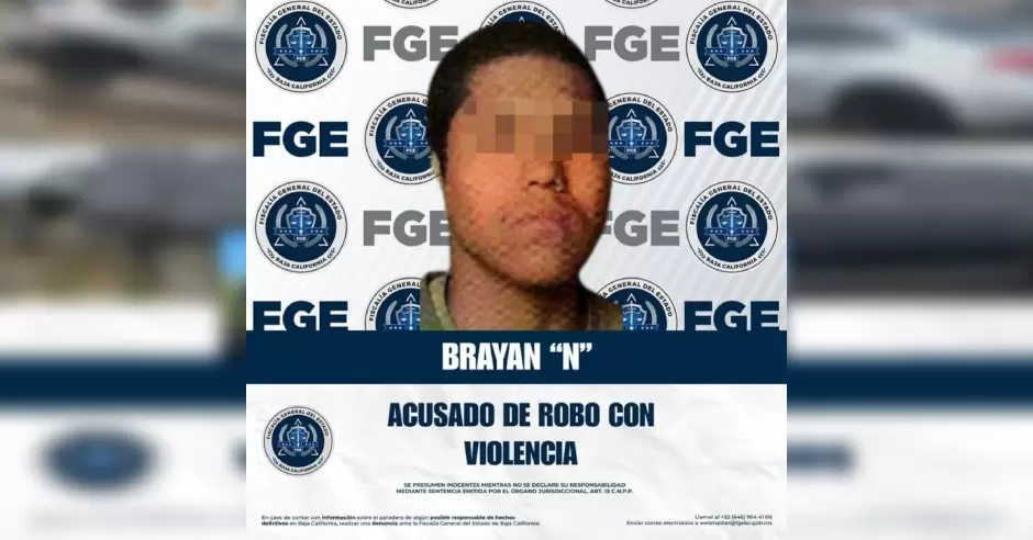 TIJUANA- La Fiscalía Regional de Tijuana, a través del Ministerio Público, obtuvo la imposición de la medida cautelar de prisión preventiva en contra de Brayan "N", por su presunta participación en el delito de robo con violencia.
