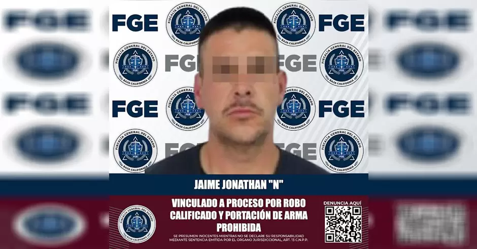 TECATE - La Fiscalía Regional de Tecate informa que, tras una exhaustiva investigación llevada a cabo por el Ministerio Público de la Unidad Especializada en Delitos de Robo, la Unidad con Detenido y la Agencia Estatal de Investigación, se logró la detención y vinculación a proceso de Jaime Jonathan "N", acusado de dos delitos diferentes.