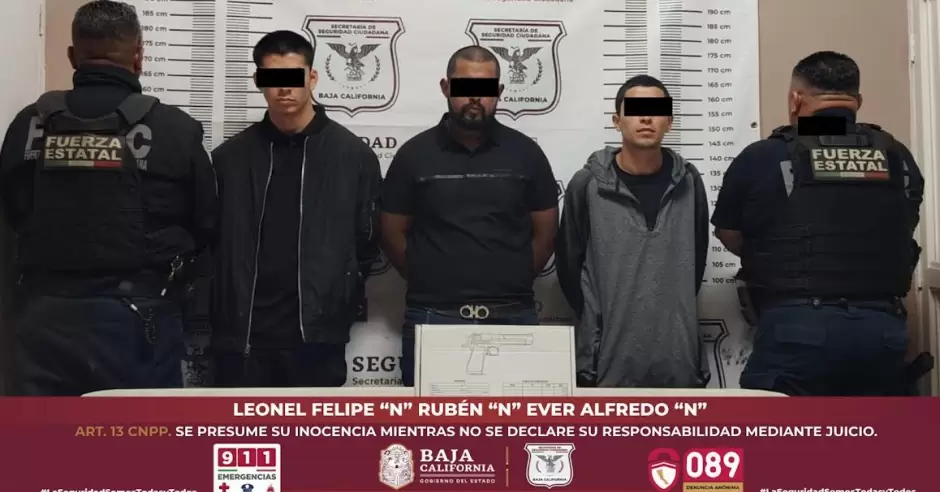 Como acto seguido, se solicitó a los tres ocupantes identificados como Leonel Felipe "N", de 26 años; Rubén "N", de 26 años y Ever Alfredo "N", de 28 años, todos originarios de Ensenada, el descenso de la unidad para poder llevar a cabo una revisión con fines precautorios.