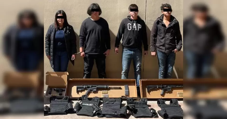 A los capturados se les aseguró un arma larga R-15 con un cargador abastecido, un arma larga calibre 9 milímetros con un cargador abastecido, un arma corta y cuatro chalecos balísticos.