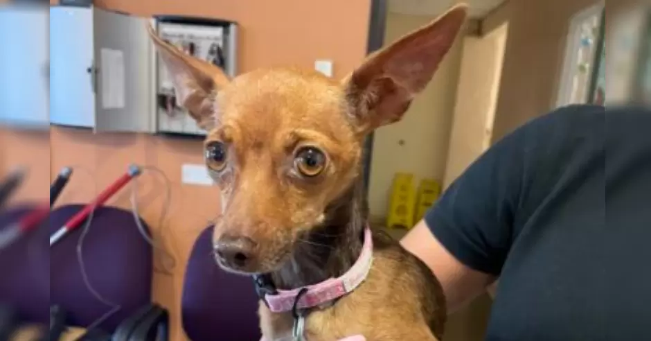El chihuahua, descrito como muy pequeño, fue retenido a la fuerza y actualmente está siendo examinado por el personal veterinario de Servicios para Animales. Aunque el perro parece asustado, el personal médico informa que se encuentra bien y se está recuperando.