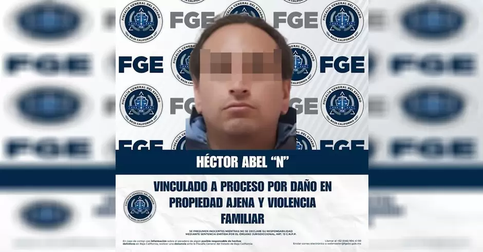 TECATE.- La Fiscalía Regional de Tecate, a través de la Unidad de Investigación con Detenido, obtuvo la vinculación a proceso en contra de Héctor Abel "N" por los delitos de daño en propiedad ajena y violencia familiar.
