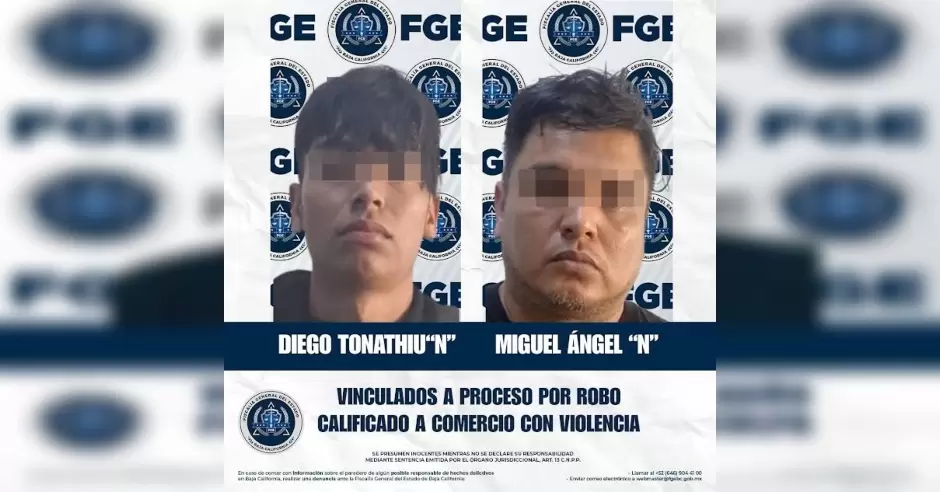 TIJUANA.- La Unidad de Investigación con Detenido, adscrita a la Fiscalía Regional de Tijuana, obtuvo la vinculación a proceso en contra de Diego Tonathiu "N" y Miguel Ángel "N", por el delito de robo calificado cometido en contra de un comercio abierto al público, ejecutado con violencia.