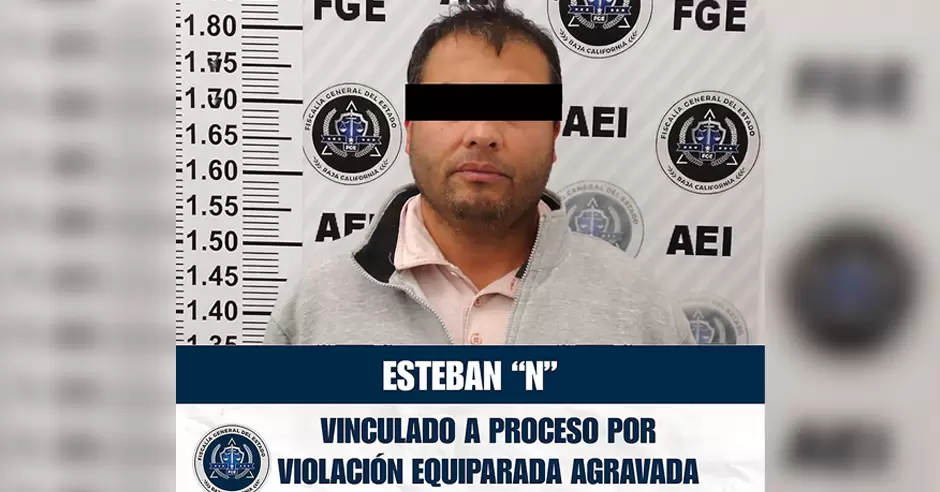 Tijuana.- La Fiscalía General del Estado obtuvo la vinculación a proceso de un hombre identificado como Esteban "N", señalado como presunto responsable del delito de violación equiparada agravada en perjuicio de una menor de 12 años.