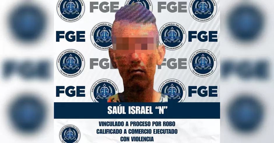 Tijuana.- La Fiscalía General del Estado (FGE) obtuvo la vinculación a proceso de Saúl Israel "N", por su presunta participación en un robo calificado con violencia cometido en un establecimiento comercial de la colonia Guaycura.