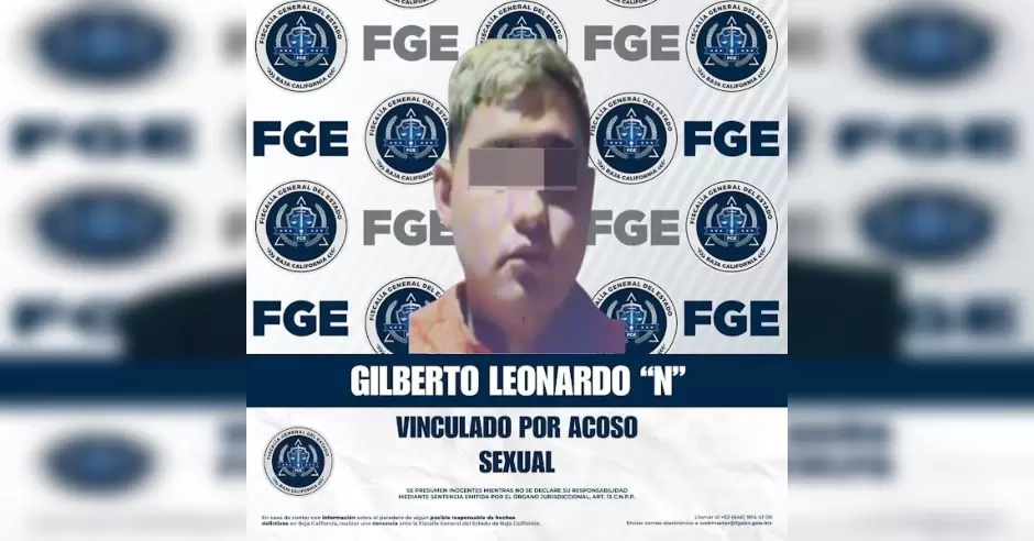 TIJUANA.- La Unidad de Investigación Especializada en Delitos Sexuales, adscrita a la Fiscalía Especializada en Delitos Contra Mujeres por Razón de Género, obtuvo la vinculación a proceso y la imposición de la medida cautelar de prisión preventiva en contra de Gilberto Leonardo "N", por el delito de acoso sexual.