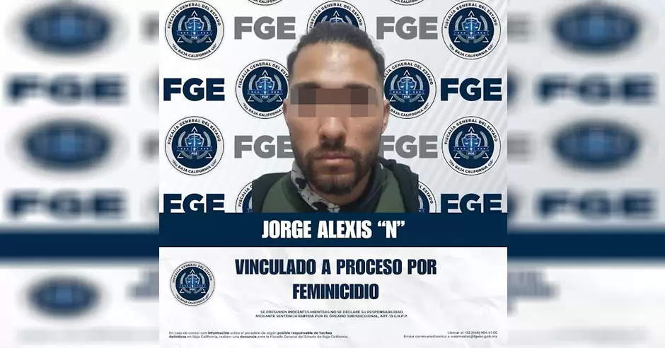 TIJUANA.- La Fiscalía Especializada en Delitos Contra la Vida, adscrita a la Fiscalía General del Estado, obtuvo la vinculación a proceso en contra de Jorge Alexis "N", por su presunta responsabilidad en el delito de feminicidio.