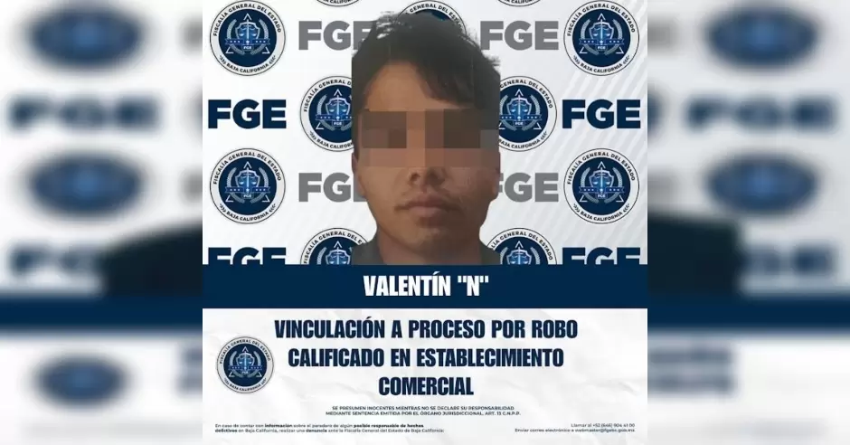 TIJUANA.- La Fiscalía Regional de Tijuana obtuvo la vinculación a proceso y la medida cautelar de prisión preventiva en contra de Valentín "N", por su presunta participación en el delito de robo calificado cometido en establecimiento comercial abierto al público.