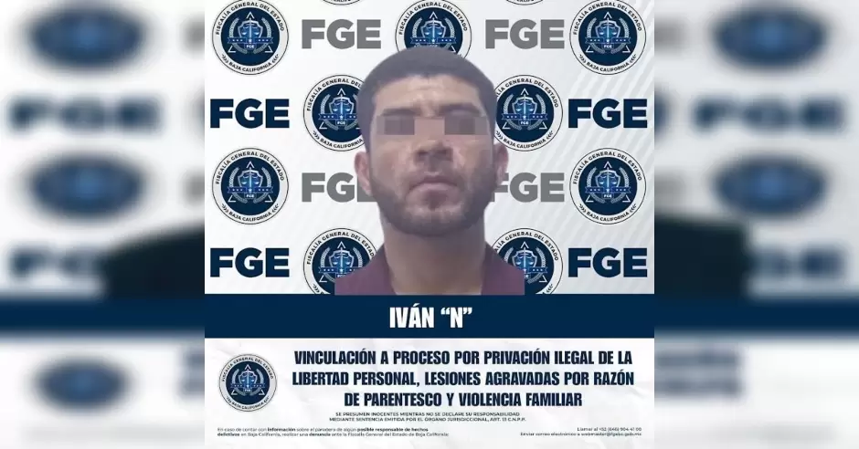 TIJUANA.- La Unidad de Investigación con Detenido, adscrita a la Fiscalía Regional de Tijuana, obtuvo la medida cautelar de prisión preventiva justificada en contra de Iván "N" por los delitos de privación ilegal de la libertad personal, lesiones agravadas por razón de parentesco y violencia familiar.