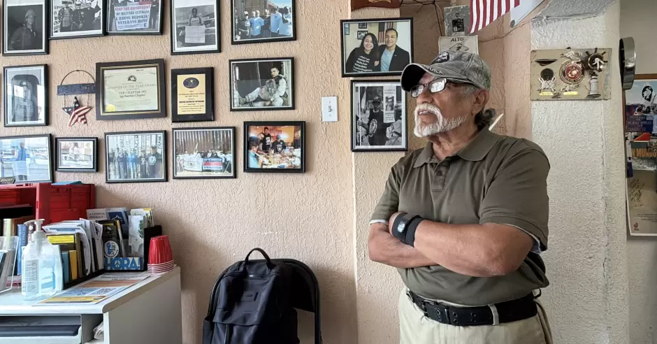 Aquí encontramos a Jesús Galván, un veterano de los Marines, escuchando un discurso del presidente Donald Trump sobre la importancia de cuidar a quienes sirvieron.