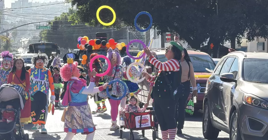 Familias completas de payasos acompañaron el recorrido, incluyendo al popular voceador "Pepenacho", quien marchó detrás del tradicional carro de "los monitos".