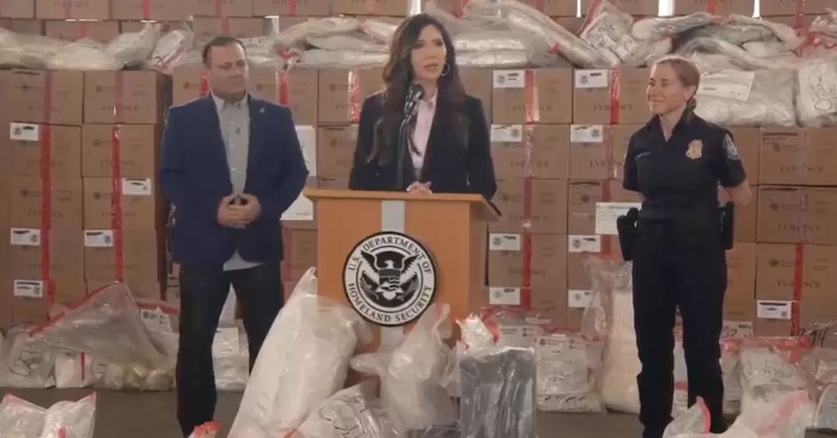 SAN DIEGO.- Frente a un cargamento asegurado en Otay Mesa, La Secretaria de Seguridad Nacional de los Estados Unidos, Kristi Noem afirmó que en nueve meses la Patrulla Fronteriza no ha liberado a migrantes en situación irregular.