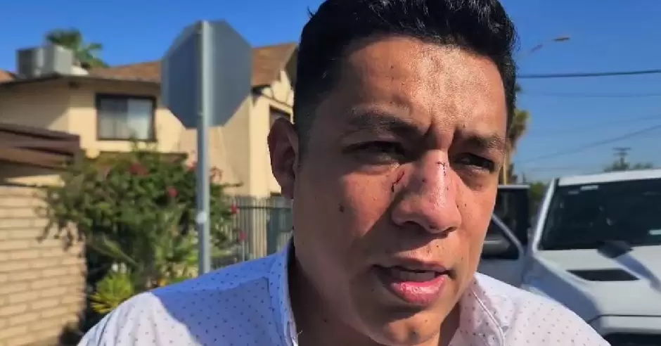 BAJA CALIFORNIA.- Las imágenes son claras. El periodista Jorge Heras está a punto de entrar al estudio donde graba su programa "Ciudad Capital" en Mexicali. Dos sujetos se le acercan con el pretexto de pedirle agua. Segundos después, lo atacan directamente en el rostro hasta derribarlo.