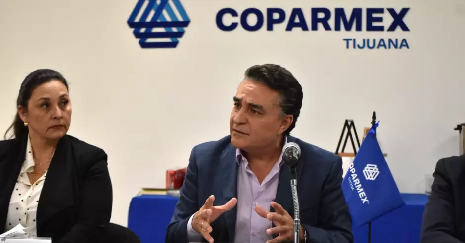 TIJUANA.- El delegado de Bienestar del Gobierno de México en Baja California, Jesús Alejandro Ruiz Uribe, expuso el Plan México y los programas sociales federales ante los integrantes de COPARMEX Tijuana que preside Roberto Vega Solís.