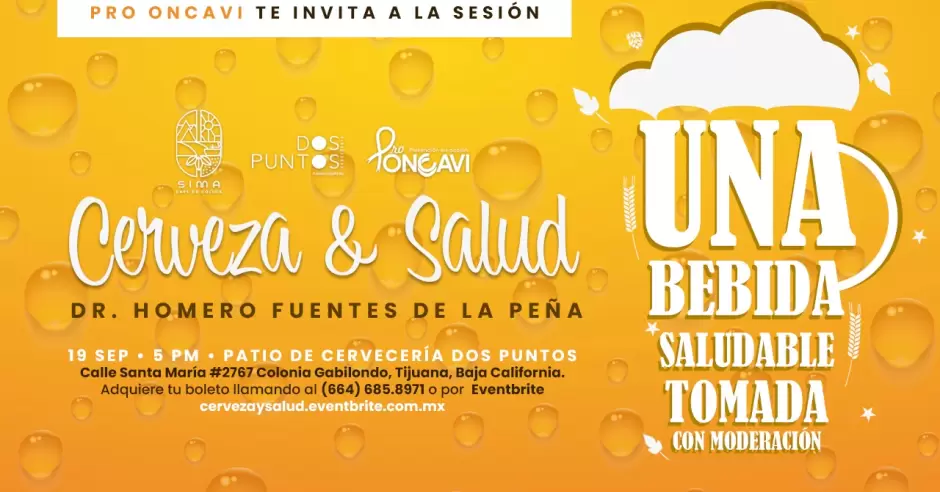 Boletos disponibles al (664) 685 8971 o en cervezayasalud.eventbrite.com.mx